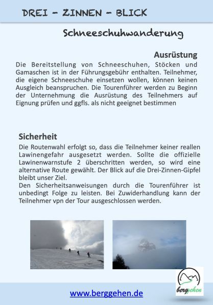 Eine Schneeschuhwanderung mit Blick auf die Drei Zinnen ist ein unvergessliches Abenteuer, das ambitionierte Naturliebhaber in eine der spektakulärsten Berglandschaften der Welt entführt. Die Drei Zinnen, eines der bekanntesten Wahrzeichen der Dolomiten, bilden mit ihren imposanten, markanten Gipfeln das majestätische Herzstück dieser Wanderung. In geselliger Gemeinschaft und von erfahrenen Guides begleitet, erleben die Teilnehmer die atemberaubende Natur aus nächster Nähe.